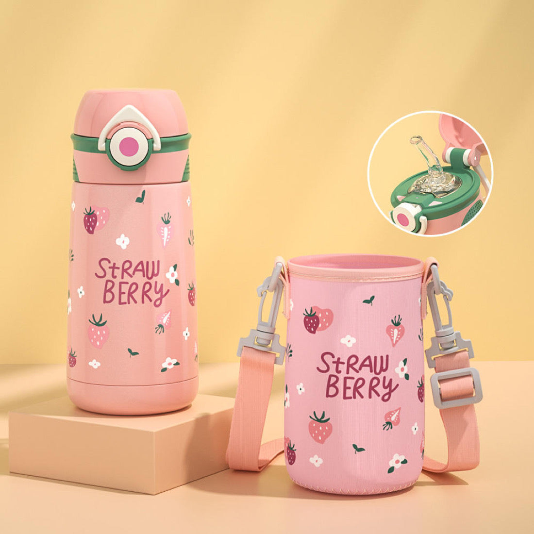 Edelstahl-Trinkflasche (SUS316) mit niedlichen Motiven – ideal für Kindergarten, Schule & unterwegs. Wahlweise mit Strohhalm oder direktem Trinkaufsatz. Dank der mitgelieferten Tragetasche können Kinder ihre Flaschen ganz bequem überallhin mitnehmen.